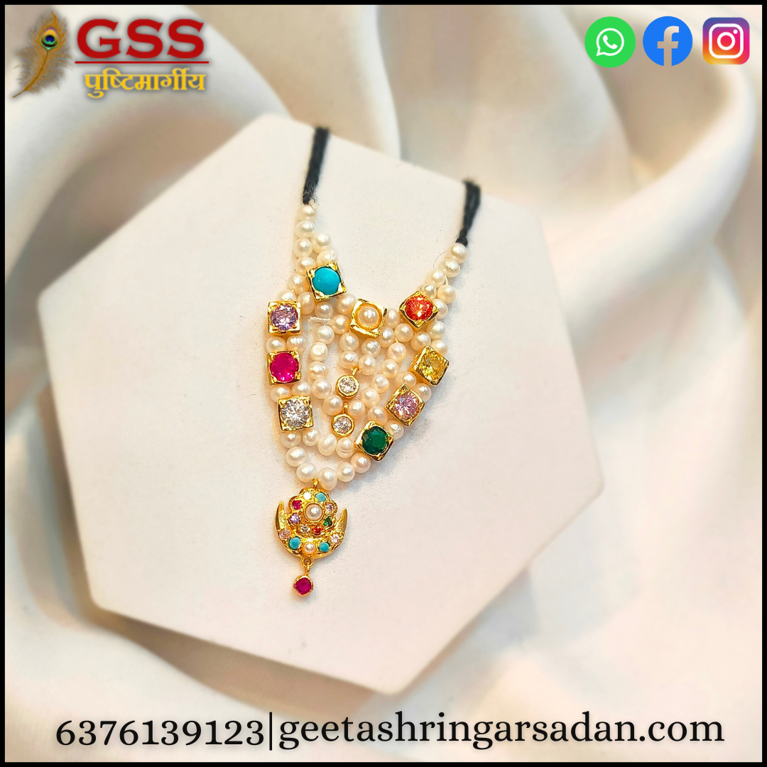 असली मोती से बनी सिल्वर जड़ाऊ नवरंग माला जी 92.5% स्टाम्प गारंटी के साथ