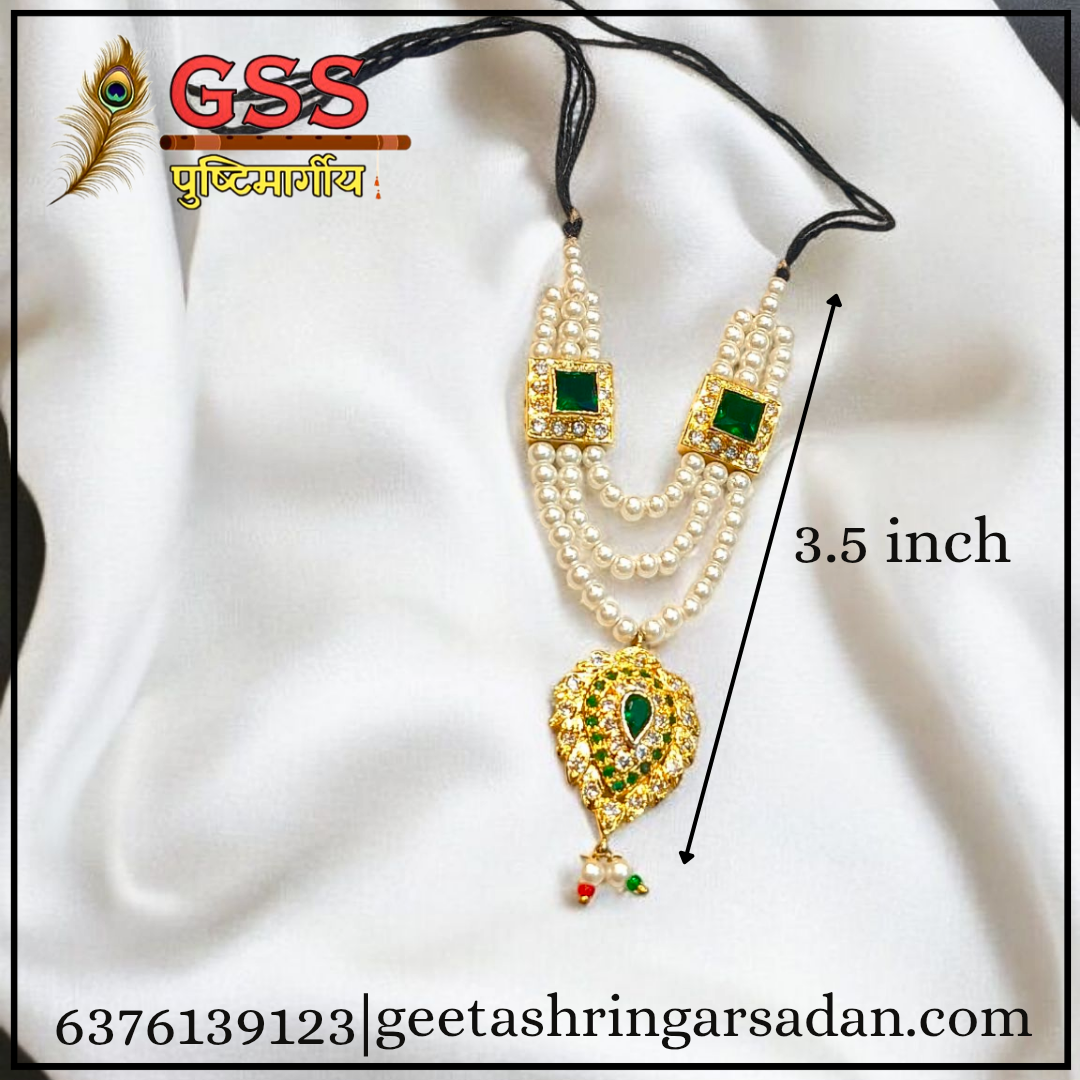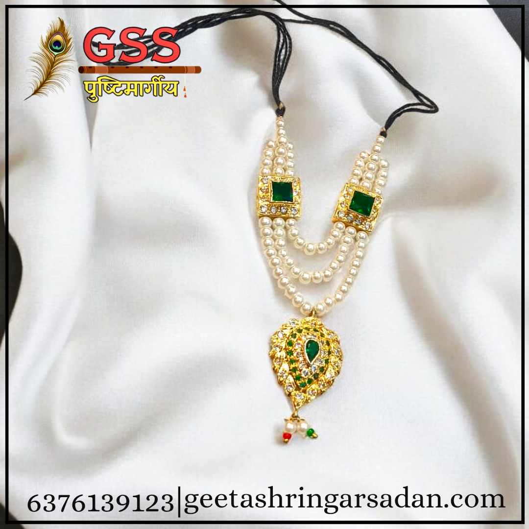 गुणवत्ता वाली सामग्री से बनी चांदी की जड़ाऊ पन्ना माला जी